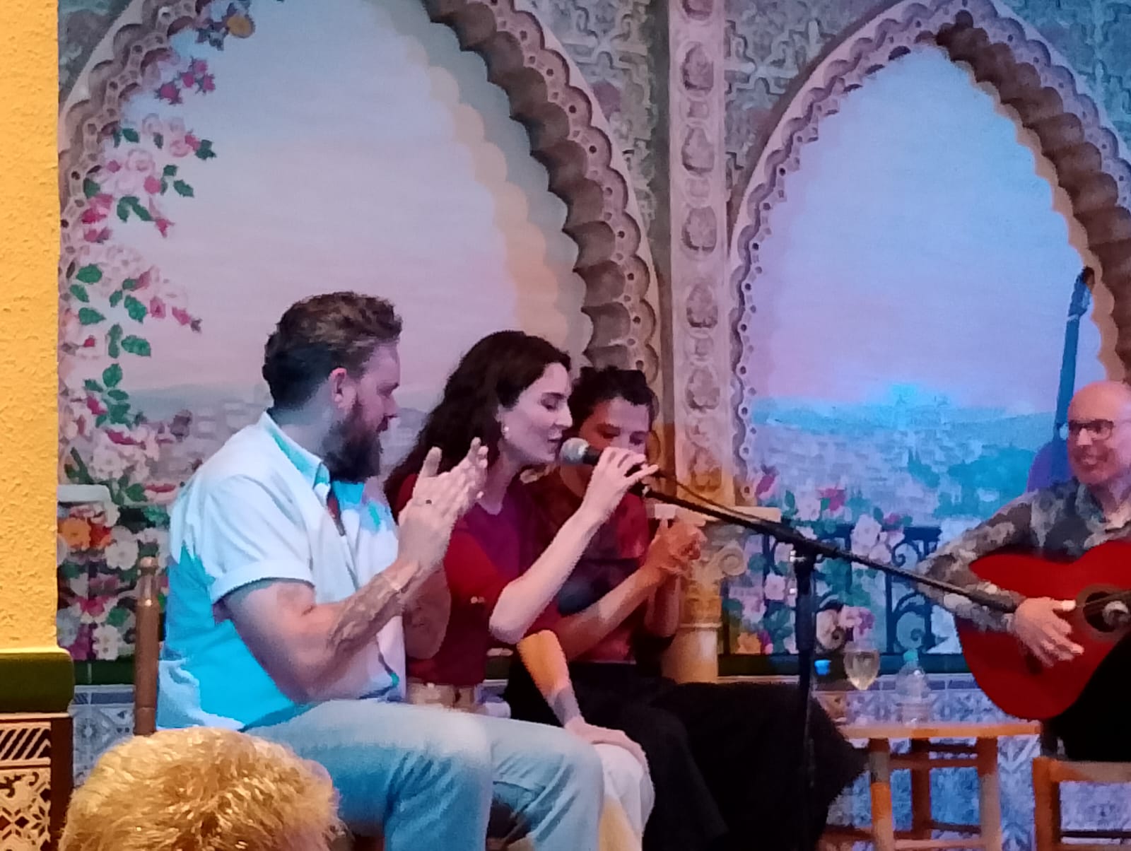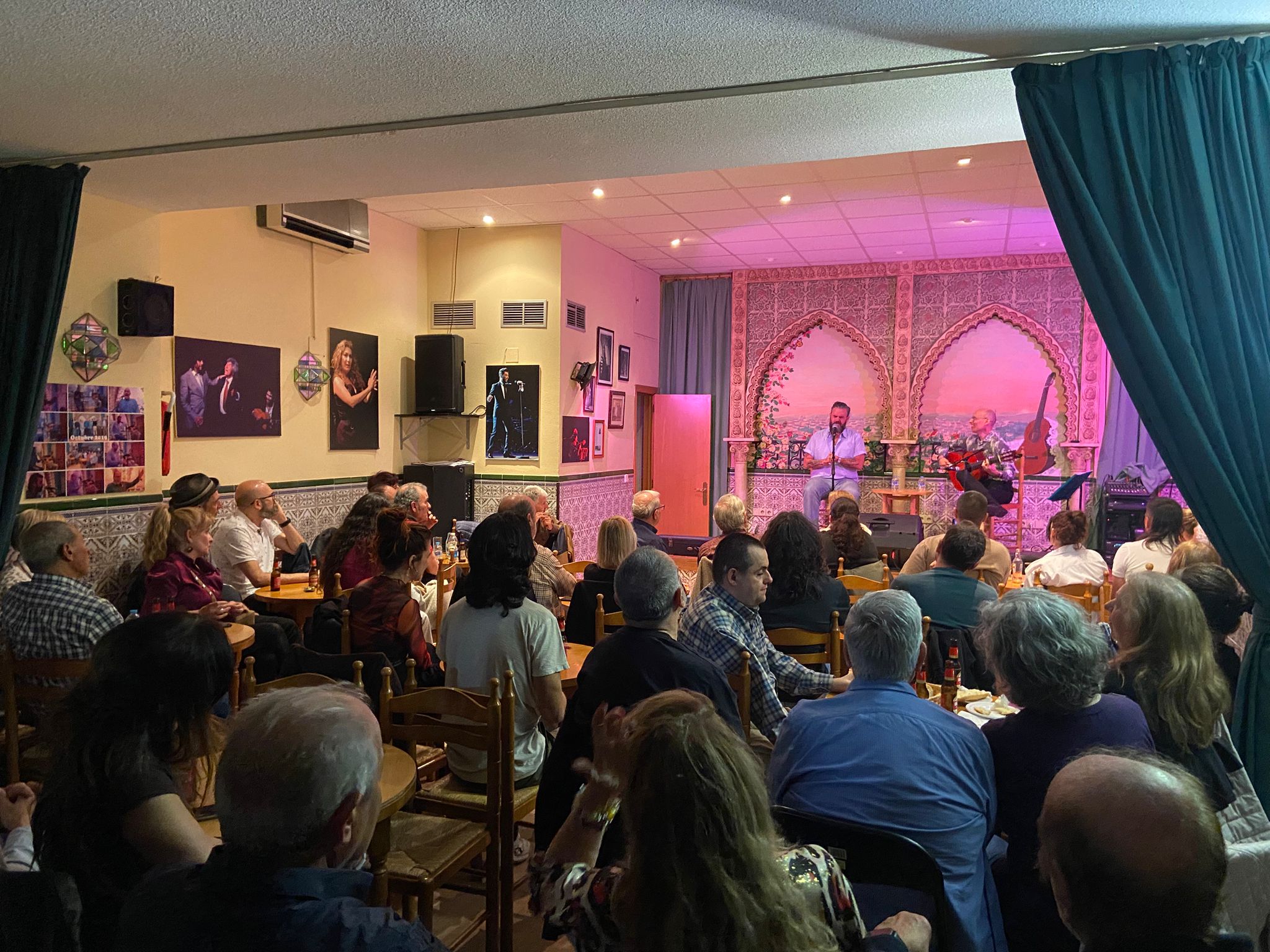 Todo el recital fue acompañado por el guitarrista amigo de la peña Andrés Sánchez, que supo lo que cada artista necesitaba en cada momento.